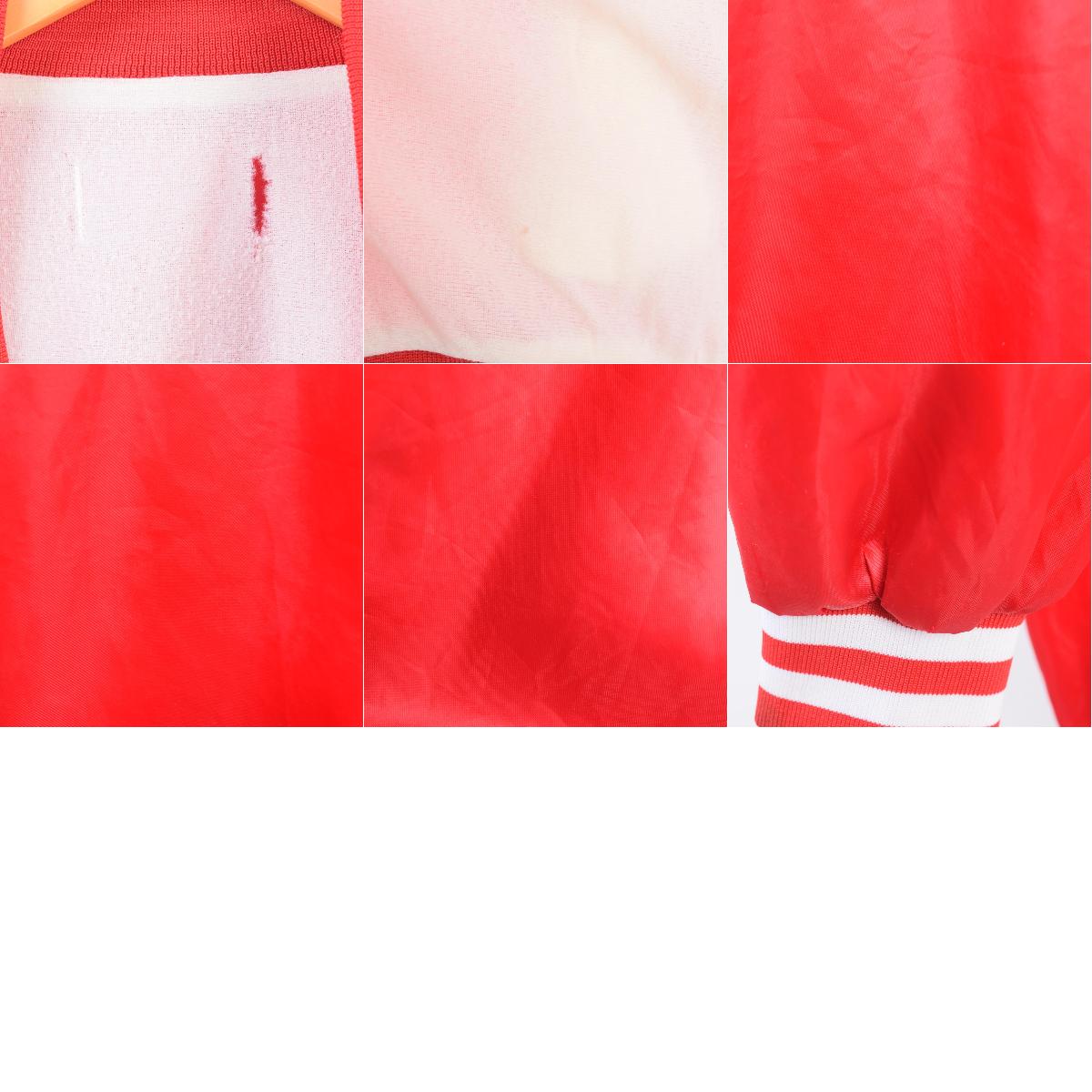 商品詳細ブランド特徴・バックロゴ・スナップボタン・ライナー・モデル/形状・BUDWEISER バドワイザー・ナイロンスタジャン アワードジャケット・素材・ナイロン・色・レッド系 赤色・柄・ロゴワッペン・ロゴプリント・生産国年代サイズ・メンズL・表記サイズ:不明・着丈:65cm・身幅:63cm・裄丈:95cm・袖丈(脇下より計測):53cm・コンディション・C・カテゴリ・メンズ・ジャケット・スタジャン・アウター・商品番号・wbh8938・取扱店・ネットショップ・スタッフコメント・素材は不明ですが、おそらくナイロンかと思われます。