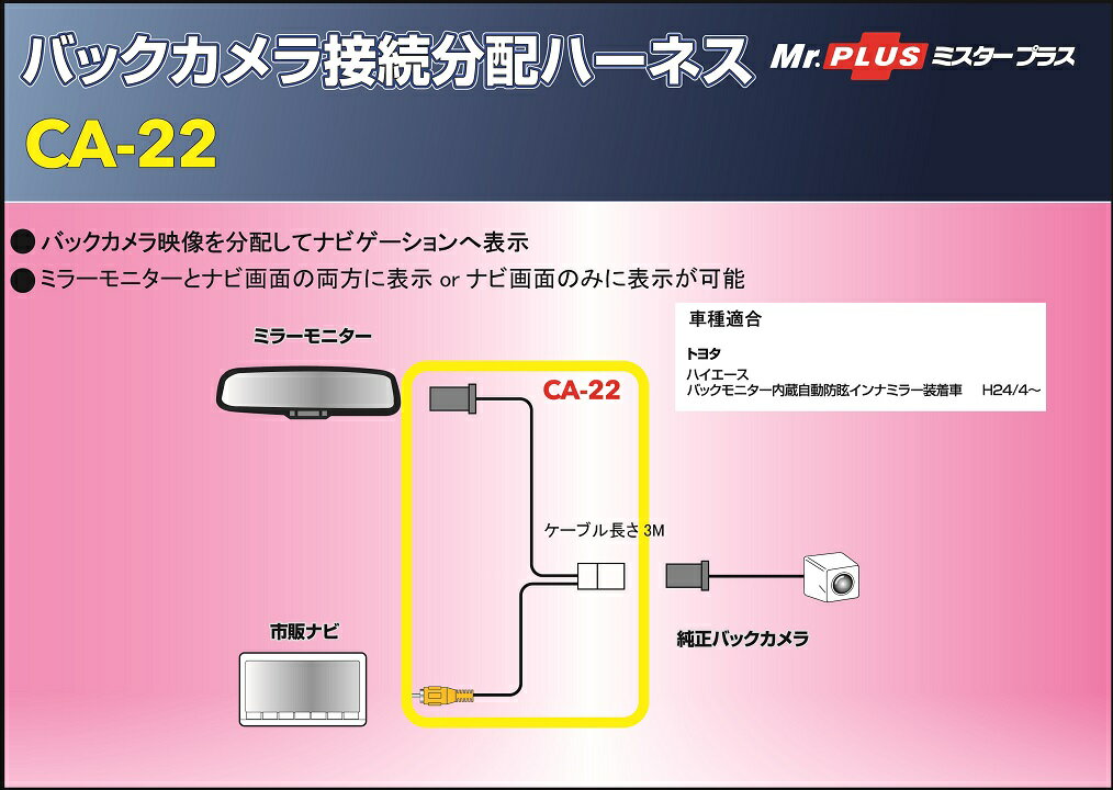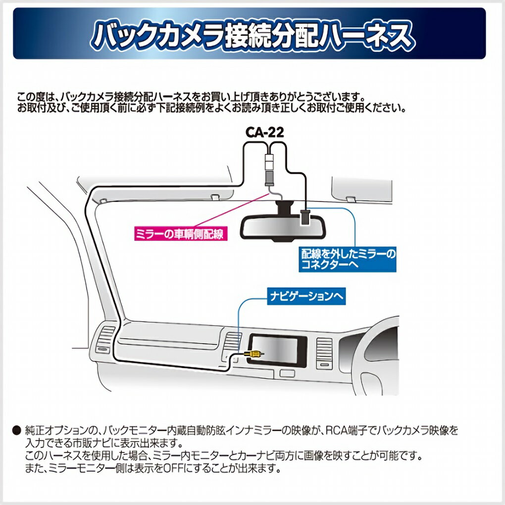 ハイエース レジアスエース用 バックカメラ接続分配ハーネス ストリート CA-22