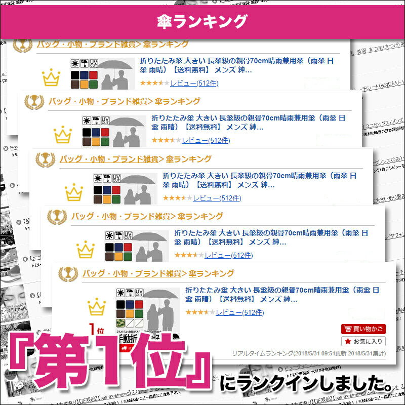 累計12,485本が完売の男性用の大きな折りたたみ傘です。